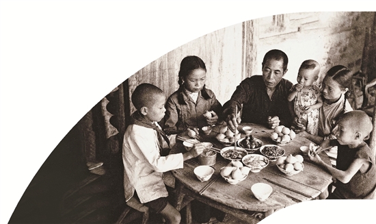 1959年 叶根土全家人欢聚一堂,喜吃团圆饭。右三为1956年出生的小儿子叶兴法。