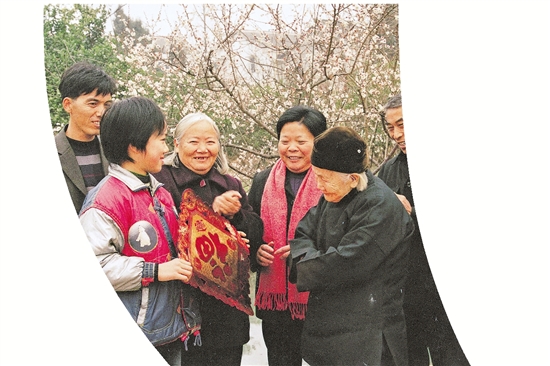 2004年 高阿二80岁时,曾外孙女杨希晨向她祝寿。