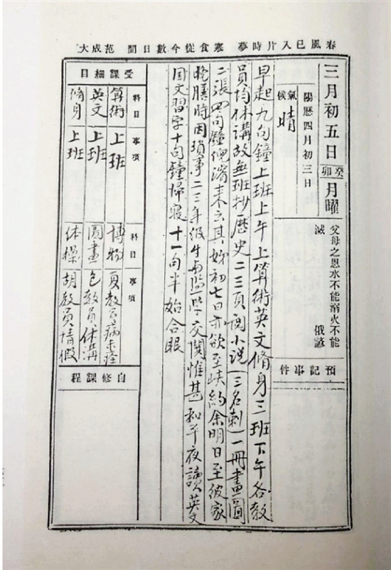 徐志摩1911年就读于浙江官立第一中学时的日记