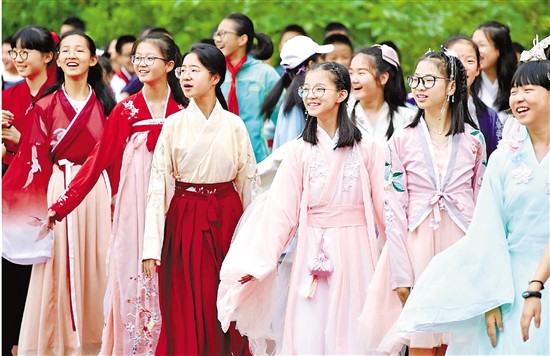 5月31日是杭州市学军小学的“梦想日”,学校鼓励同学们打扮成自己想成为的人。刹那间,统一的校服被五花八门的个性化装扮取代,校园里刮起一股汉服风。 本报记者 潘海松 摄
