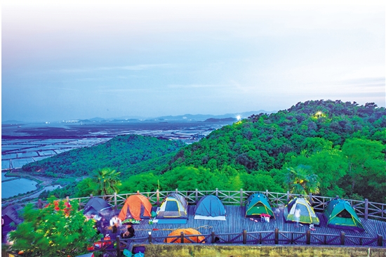 在宁海越溪乡,游客露营村外,融入大自然 李国 摄