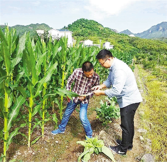 缙云县农业农村局工作人员教农民识别与防治草地贪夜蛾的知识。