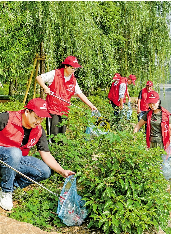 6月29日,长兴县煤山镇合溪北涧上,当地党员志愿者和河长一起巡河治河,以实际行动纪念党的生日。 拍友 吴拯 陈鲜忠 摄