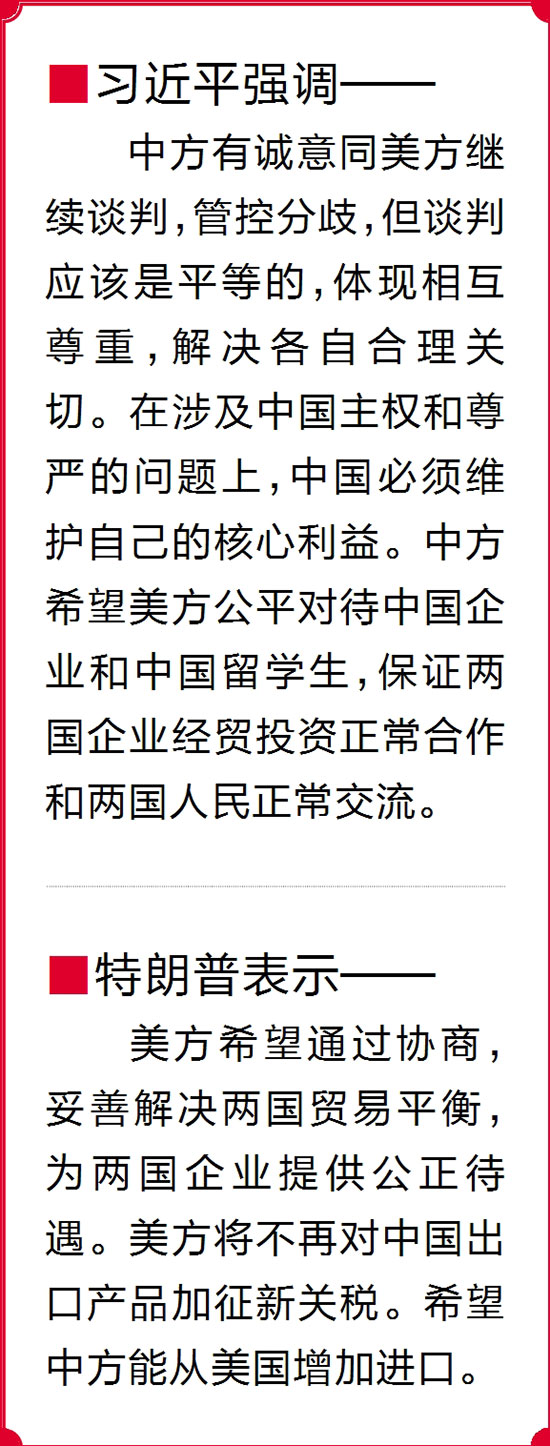 美方希望通过协商,妥善解决两国贸易平衡,为两国企业提供公正待遇。美方将不再对中国出口产品加征新关税。希望中方能从美国增加进口。
