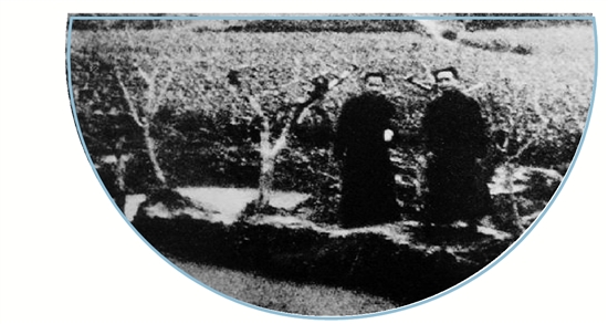 施昕更(左)在良渚遗址现场。