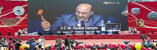 7月6日,当联合国教科文组织世界遗产委员会第43届大会主席、阿塞拜疆文化部部长阿布法斯·加拉耶夫的木槌重重落下,良渚古城遗址正式列入《世界遗产名录》。 本报记者 吴煌 倪雁强 摄