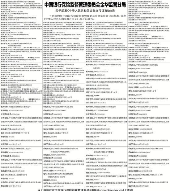 下列机构经中国银行保险监督管理委员会金华监管分局批准,颁发《中华人民共和国金融许可证》,现予以公告。