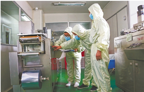 供电员工在天厨蜜源生产车间内帮助用户排查用电设备情况 奚琪城 摄