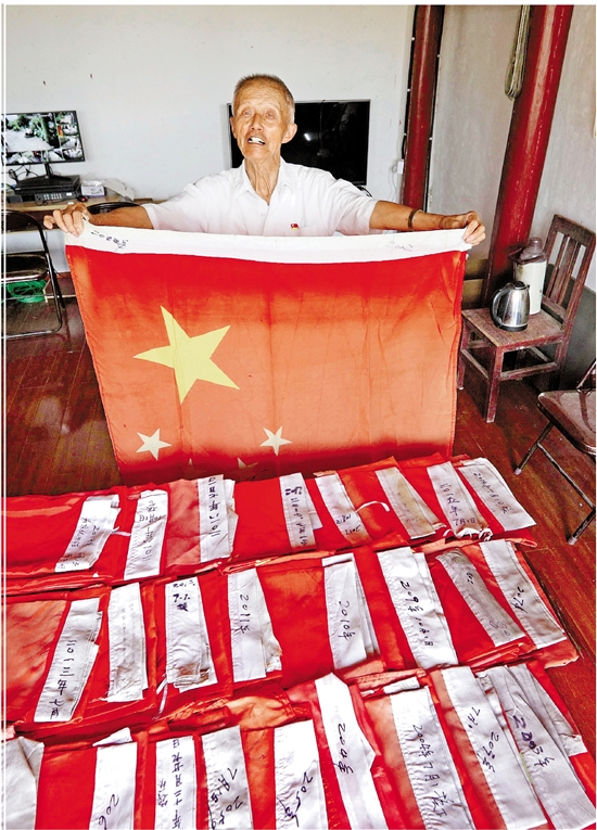 朱宗鹤把每年换下来的国旗都折叠得整整齐齐,小心翼翼地安放在一起。