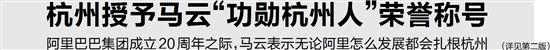 杭州授予马云“功勋杭州人”荣誉称号