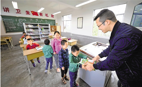近年来,重庆市南川区积极推动义务教育均衡发展,努力让每个孩子都能享有公平而有质量的教育。图为9月2日,当地石良小学校小学一年级的学生在领取新书。 新华社发