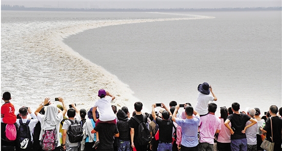 9月13日中午12时许,在浙江海宁盐官观潮胜地公园,近万人一睹钱塘江大潮的壮景。 本报记者 董旭明 姚群 摄