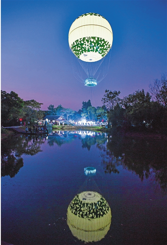 9月13日晚,杭州西溪湿地推出“中秋团圆夜”活动,邀请亲子家庭和汉服爱好者一起乘坐氦气球到空中赏月,一览西溪湿地夜景。 本报记者 董旭明 拍友 周莹 摄