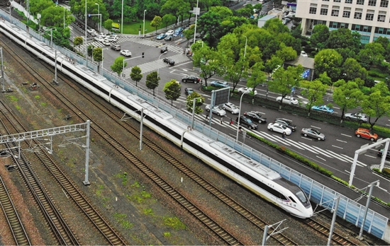 绍兴与宁波通行的城际列车。