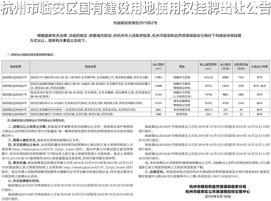 杭州市临安区国有建设用地使用权挂牌出让公告