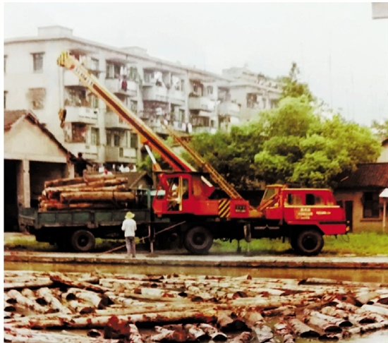 1980年至1990年,杭州火柴厂的池塘浸满木材。