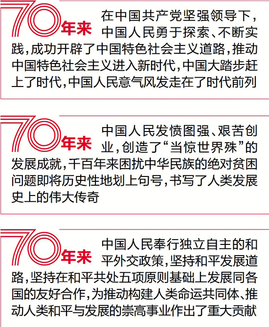 在中国共产党坚强领导下,中国人民勇于探索、不断实践,成功开辟了中国特色社会主义道路,推动中国特色社会主义进入新时代,中国大踏步赶上了时代,中国人民意气风发走在了时代前列