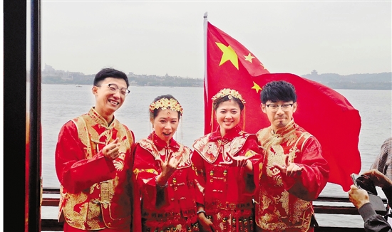 台湾新人们在西湖留下浪漫合影。
