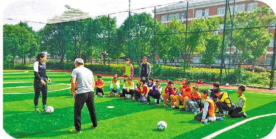 海盐县沈荡镇齐家小学的孩子在笼式足球场活动