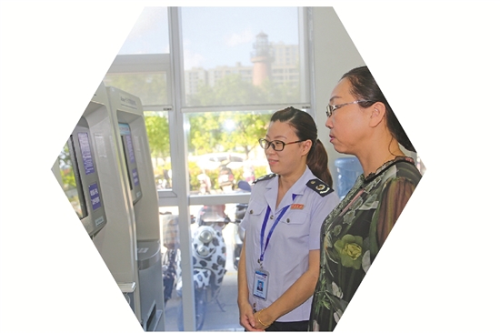 税务工作人员帮助纳税人通过ARM机自助领购发票 柳京宏 摄