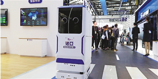 医院物流机器人在乌镇互联网之光博览中心游弋。 本报记者 倪雁强 摄
