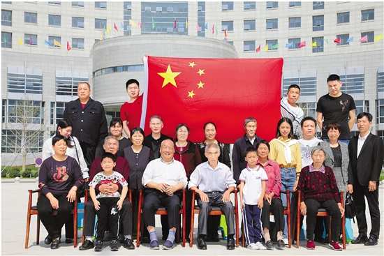 | 10月21日,黄岩区“不忘初心、牢记使命”主题展暨“与国同梦”徐永辉与叶根土一家70年图片展在黄岩区档案馆举行。1950年,浙江日报社摄影记者徐永辉开始跟踪拍摄嘉兴市七星桥雇农叶根土一家五口,记录这一家人的生活变迁。图为徐永辉(前排左三)与叶家人合影。 本报记者 汪驰超 摄 |