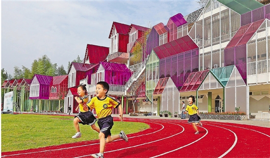 | 杭州淳安县富文乡中心小学的学生在梦幻般的乡村校园中快乐成长。该小学是杭州农村小规模学校整体提升综合改革项目试点学校。今年初,我省将“让城乡孩子共享优质教育资源”纳入十方面民生实事。 本报记者 林云龙 摄 |