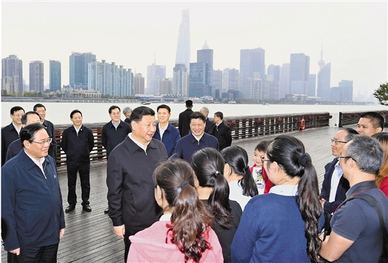 11月2日至3日,中共中央总书记、国家主席、中央军委主席习近平在上海考察。这是2日下午,习近平在杨浦区滨江公共空间杨树浦水厂滨江段,同正在休闲健身的市民亲切交谈。 新华社记者 谢环驰 摄