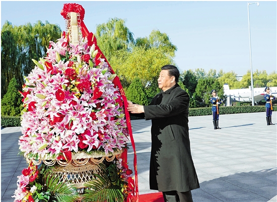 | 11月8日,中共中央总书记、国家主席、中央军委主席习近平出席庆祝空军成立70周年主题活动,代表党中央和中央军委,对空军成立70周年表示热烈祝贺,向空军全体官兵致以诚挚问候。这是习近平来到位于北京市昌平区的中国航空博物馆,向人民空军英烈敬献花篮。 新华社记者 李刚 摄 |