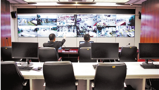 宁波海关关员通过视频监控对各业务现场进行指挥。 李鹏程 摄