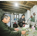 ◀晚饭时间,南麂岛国姓岙村渔民杨尔右夫妻从电饭锅里盛出热腾腾的米饭。 拍友 李金辉 摄