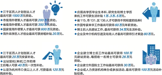 ◆江干区百人计划创新人才最高可获20万元安家补助。