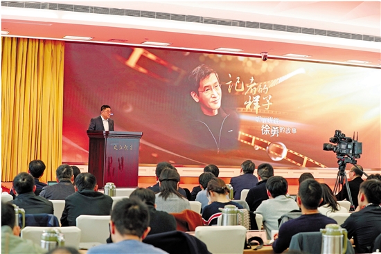 新华社国际部编委、高级编辑凌朔讲述徐勇同志的先进事迹。 本报记者 魏志阳 摄