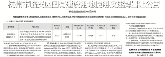 杭州市临安区国有建设用地使用权挂牌出让公告