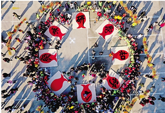八位书法家共同书写“鱼桑研学 知行合一”。