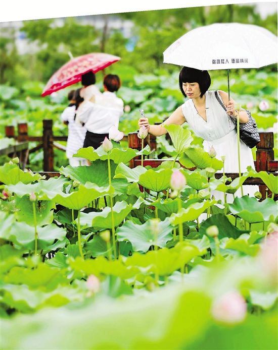 峰江街道的下陶公园荷塘。