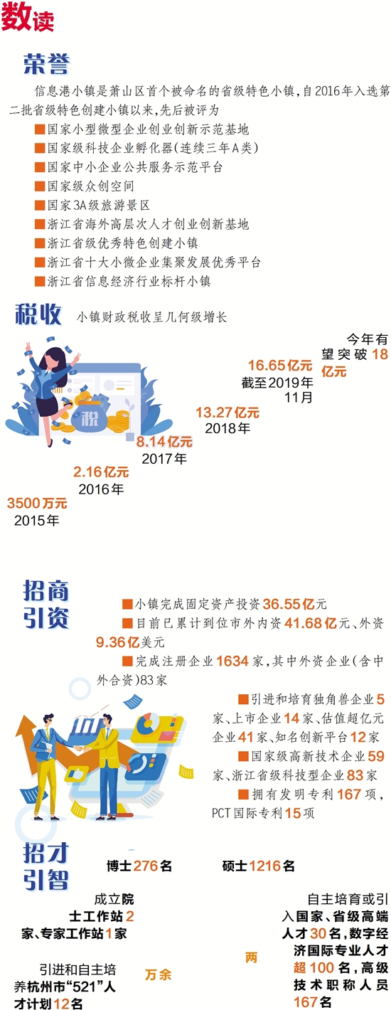 信息港小镇是萧山区首个被命名的省级特色小镇,自2016年入选第二批省级特色创建小镇以来,先后被评为