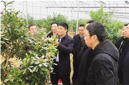 省农科院专家3日在渚山村杨梅基地提供技术指导。 拍友 郑锡良 摄