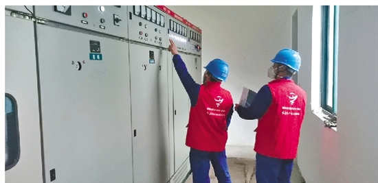 国网建德市供电公司为建德朝美公司检查配电设备,保障企业平稳用电。