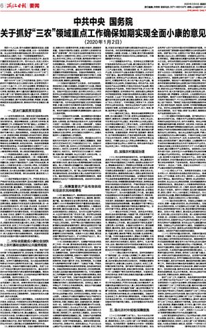 关于抓好“三农”领域重点工作确保如期实现全面小康的意见