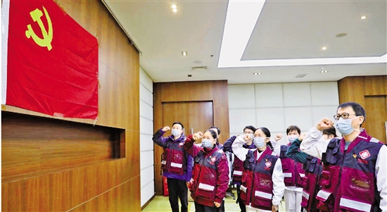 浙江支援武汉医疗队举行入党宣誓仪式,年轻队员火线入党。