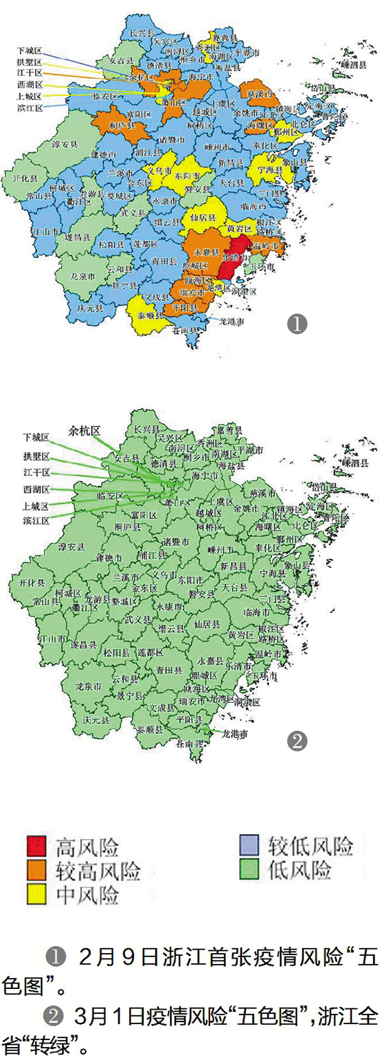❶ 2月9日浙江首张疫情风险“五色图”。