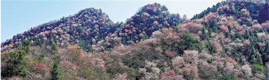 在建德市三都镇的大山里,万亩野樱花进入盛花期,远远望去像是飘浮在山间的云朵。 本报记者 林云龙 拍友 刘志强 摄