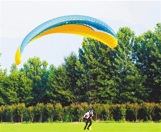 营地教练对游客进行飞行伞训练