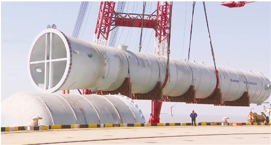 直径7米重达710吨的第二脱水塔在独山能源安装