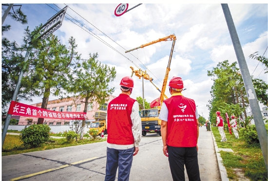 5月22日,国网嘉善县供电公司携手国网上海青浦公司,在嘉兴市嘉善县联合开展长三角一体化示范区内首个带电作业 李超 摄