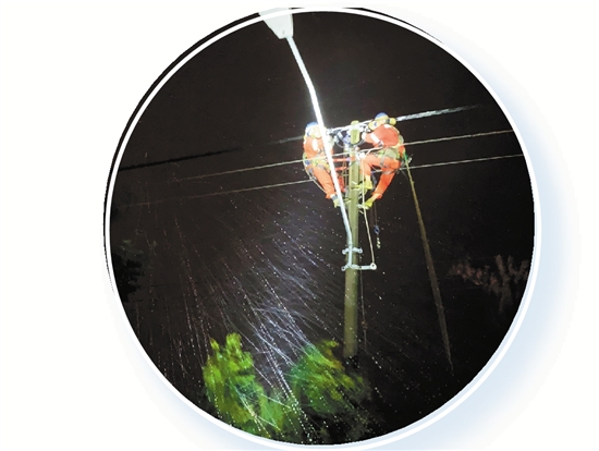 ☞ 2019年“利奇马”台风造成海宁胜利台区30多户居民家中断电,嘉兴海宁袁花供电所红船党员服务队队员在风雨中抢修 黄丹凤 摄