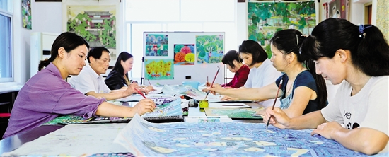 余东村农民画创作氛围日益浓厚,吸引越来越多的村民加入。 本报记者 祝旖波 摄