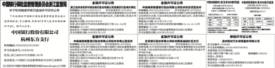 下列机构经中国银行保险监督管理委员会浙江监管局批准,予以撤销,并收回《中华人民共和国金融许可证》。现予以公告:
