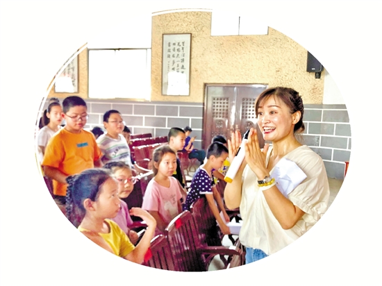 △ 开化县文化馆馆长方阳红在给孩子们上课。